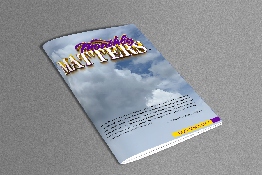 MATTERS, is a monthly magazine published by Grace Circle, a 501(c) 3 nonprofit corporation, developed to educate and nurture individuals into the practical relevancy of the wisdom of God.